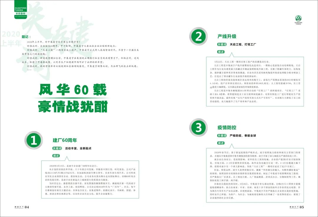 當(dāng)有凌云志,敢為天下先。2020年,凌宇人攻堅(jiān)克難,戰(zhàn)疫魔,興實(shí)業(yè),復(fù)經(jīng)濟(jì),改產(chǎn)線,以拼搏進(jìn)取的姿態(tài)致敬春華秋實(shí)的六十載。而今,又到了《罐通天下》發(fā)刊的日子,它記錄著凌宇上半年的風(fēng)風(fēng)雨雨,它是歷史的見(jiàn)證者,也是成績(jī)的記錄者。接下來(lái)就讓我們走進(jìn)凌宇,走進(jìn)《罐通天下》。